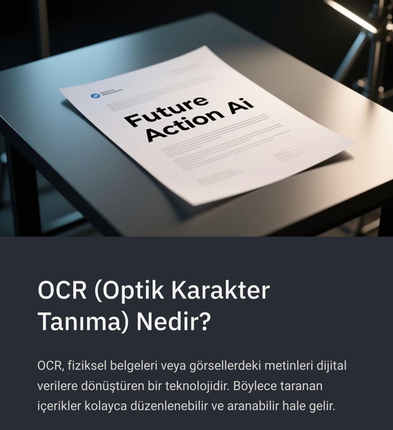 OCR, fiziksel belgeleri, taranmış dokümanları veya fotoğraflardaki yazıları dijital metne dönüştüren bir teknolojidir.